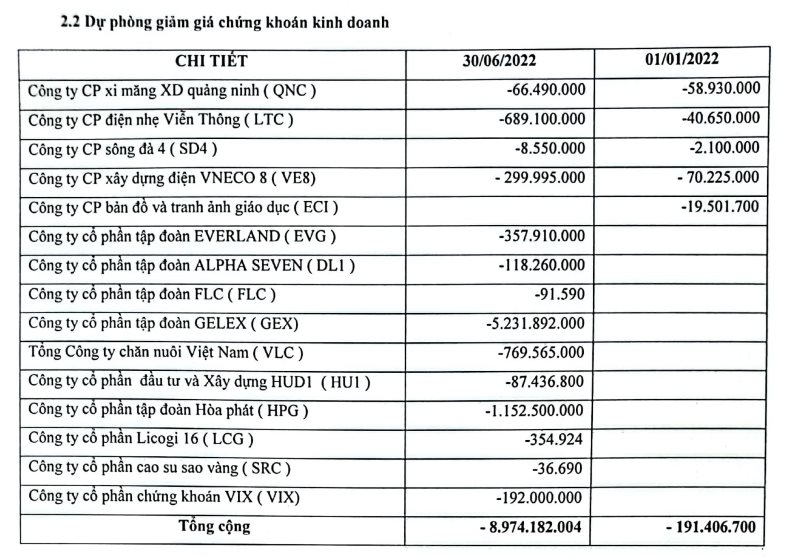 Với CTCP Chứng khoán Sài Gòn - Hà Nội (Mã SHS - HNX), công ty này vừa ghi nhận khoản lỗ ròng gần 300 tỷ đồng qua đó kéo lợi nhuận nửa đầu năm 2022 xuốngcòn hơn 32 tỷ - chưa tới 2% kế hoạch cả năm.